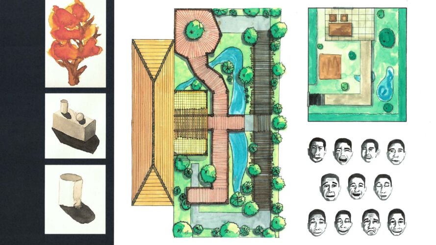 Elle a également représenté le jardin arborant sa proposition architecturale.