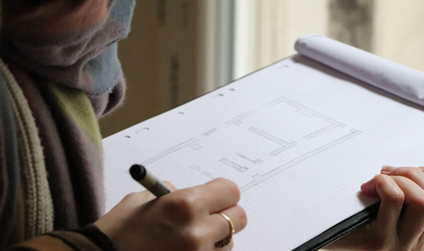 Après la prise de cotes, nous leur avons demandé de retranscrire sur plans et à travers des croquis rapides les différentes mesures qu'ils ont pu prendre durant la visite.